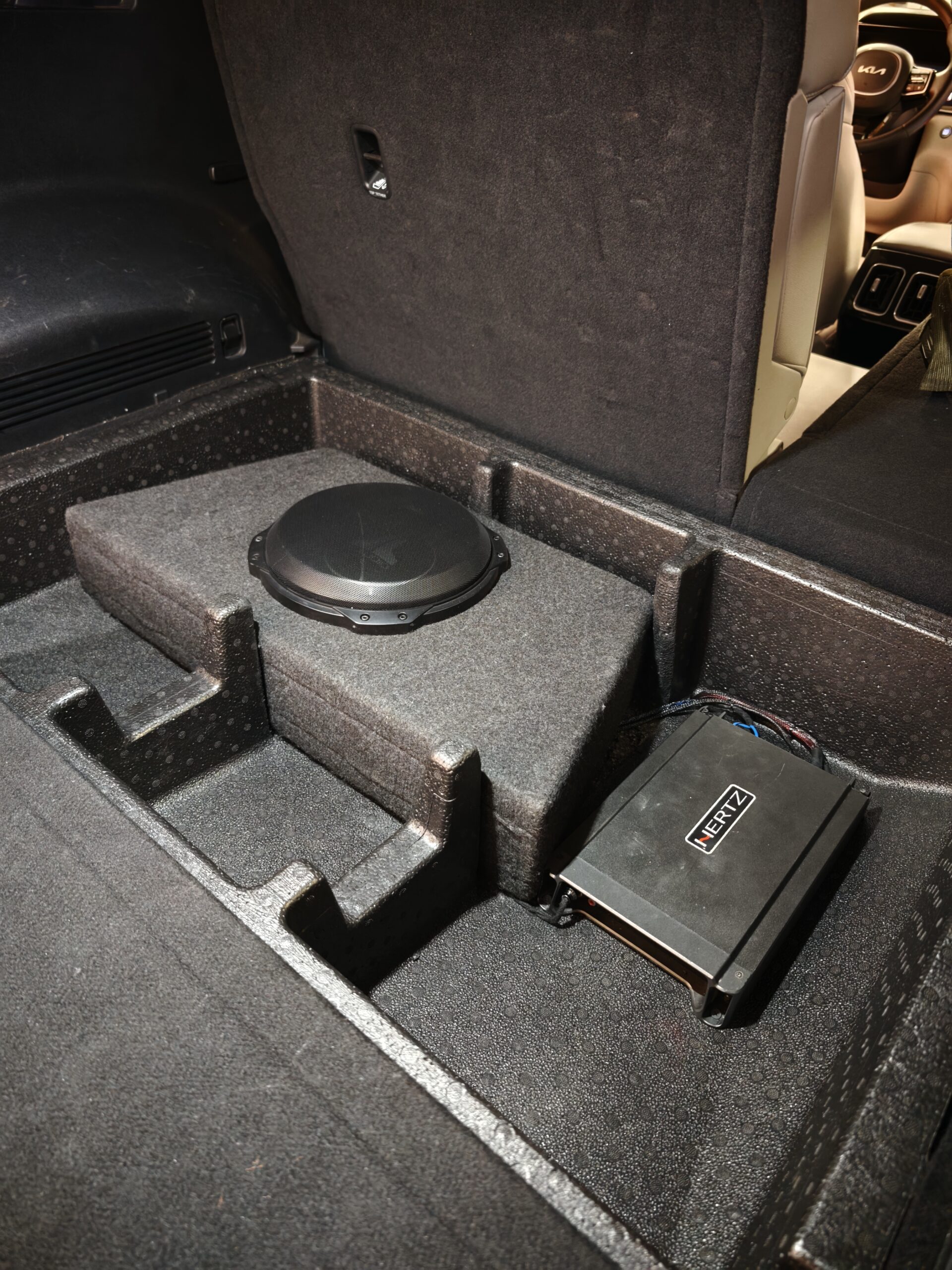 V nových Kiách je zvuk katastrofálny či už bez alebo s príplatkovým audiom Bose. Tiež je pomerne náročné dobre naladiť nový aparát, pretože pôvodný audiosystém od výroby obsahuje veľmi silnú equalizáciu a tiež veľa allpass filtráciu. A teda vôbec nepomôže len jednoduchá výmena reproduktorov alebo vytlmenie dverí. V tomto konkrétnom prípade ide o prerábku po už „vylepšenej“ inštalácii od konkurencie, v ktorej však bolo viacero problémov (od nevhodne zvoleného zosilňovača Match M5.4, slabého subwooferu vhodného do rezervy, rušeniu pravého výškového reproduktora až po vypnutie celého systému pri vyšších hlasitostiach, neodstránenie fabrických all pass filtrov a equalizácie a tiež nevhodne zvoleného len 2-pásme bez stredových reproduktorov).