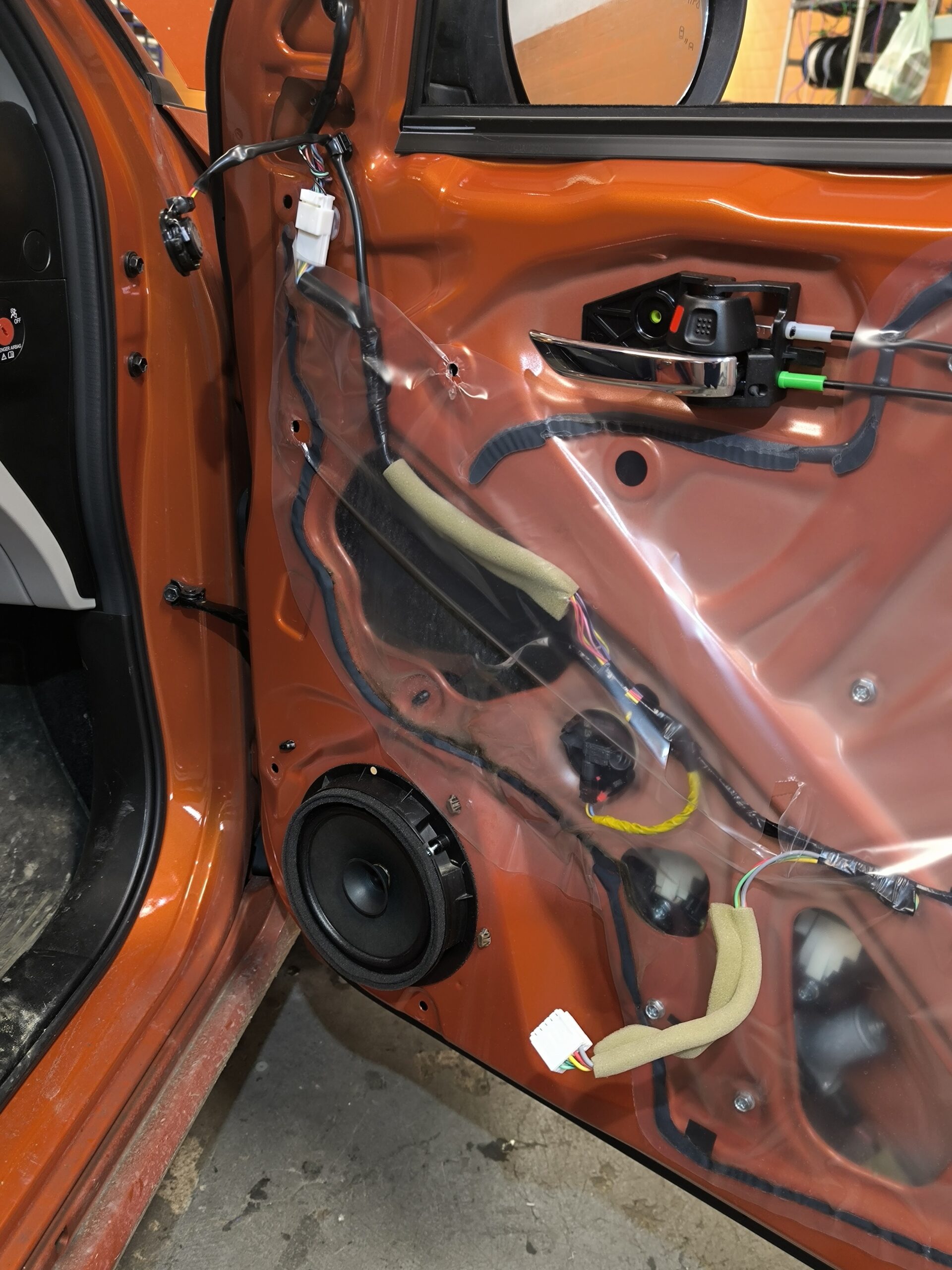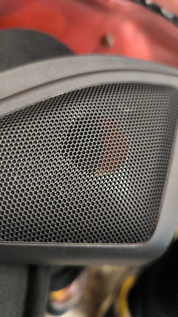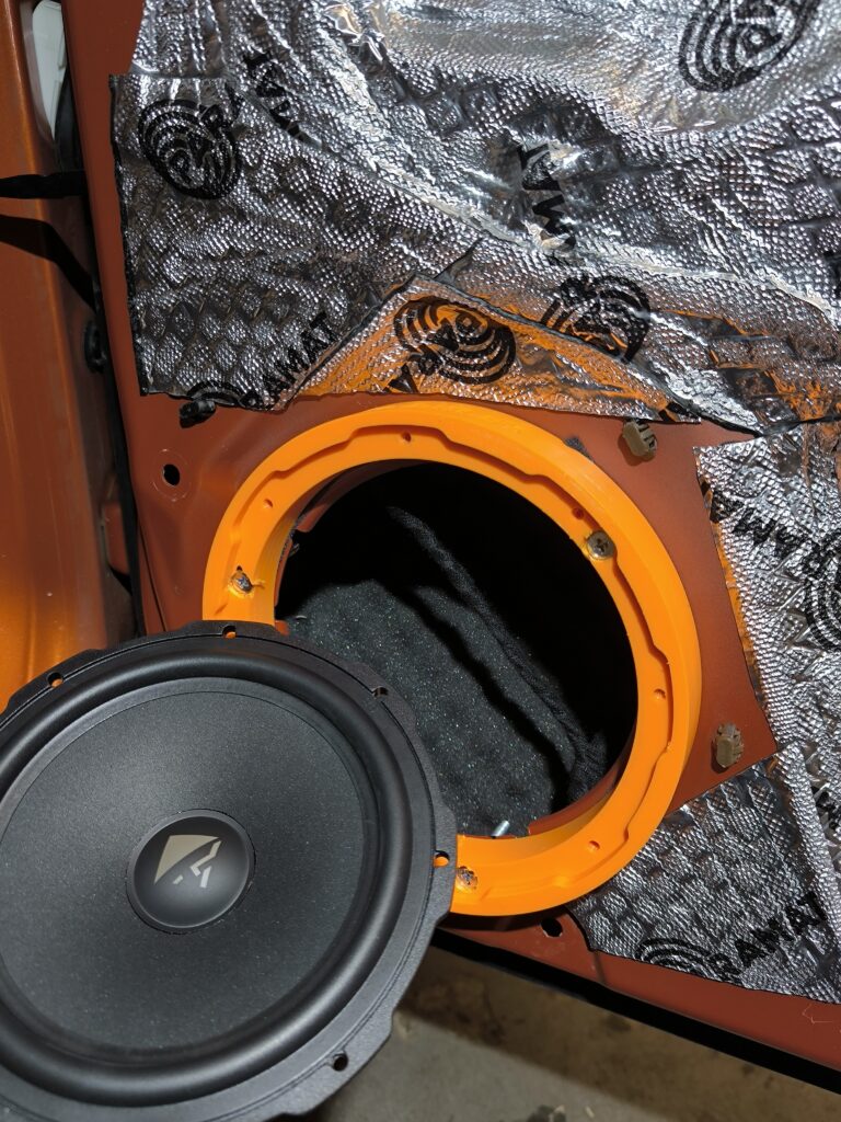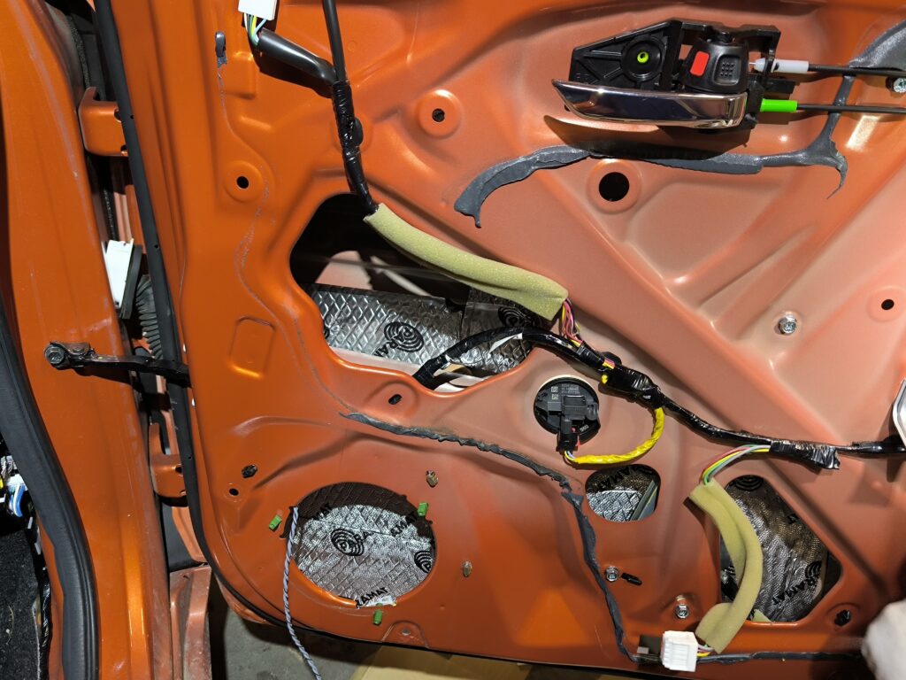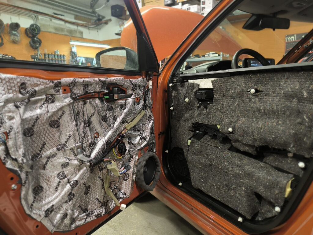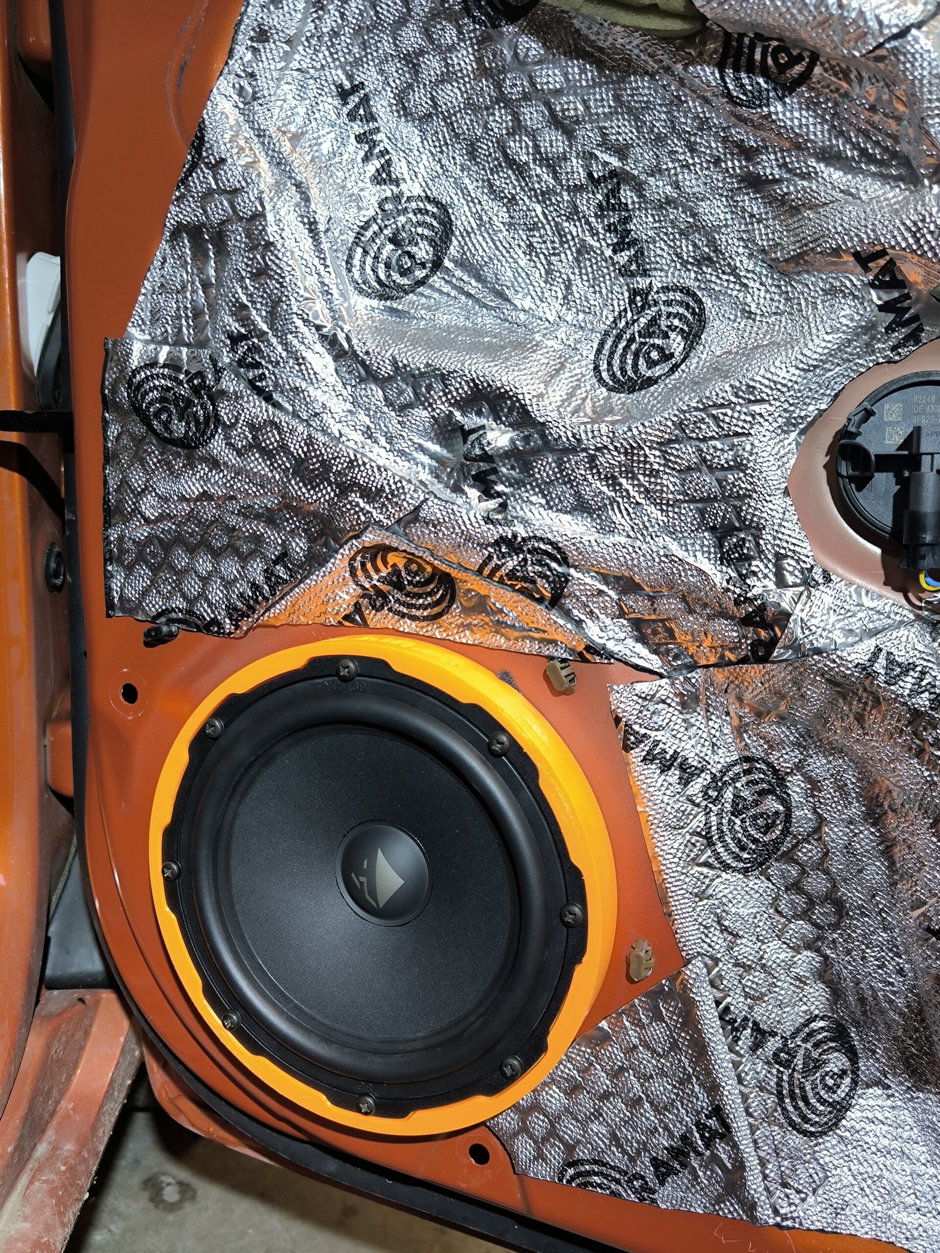 Akustike výrazne pomohli dôkladné vytlmené predné dvere s odstránením akustického skratu. Vďaka odstráneniu all pass filtrov pôvodnej audio jednotky je zvuk aj v basovj sekcii plný.