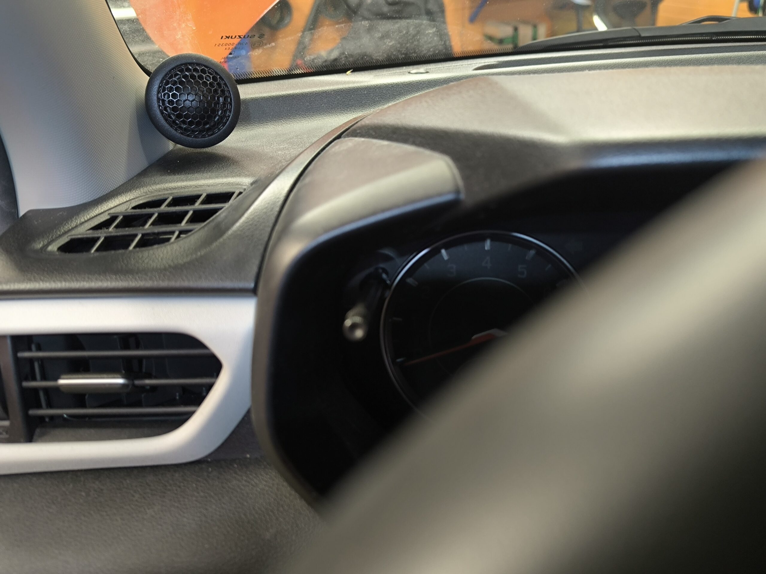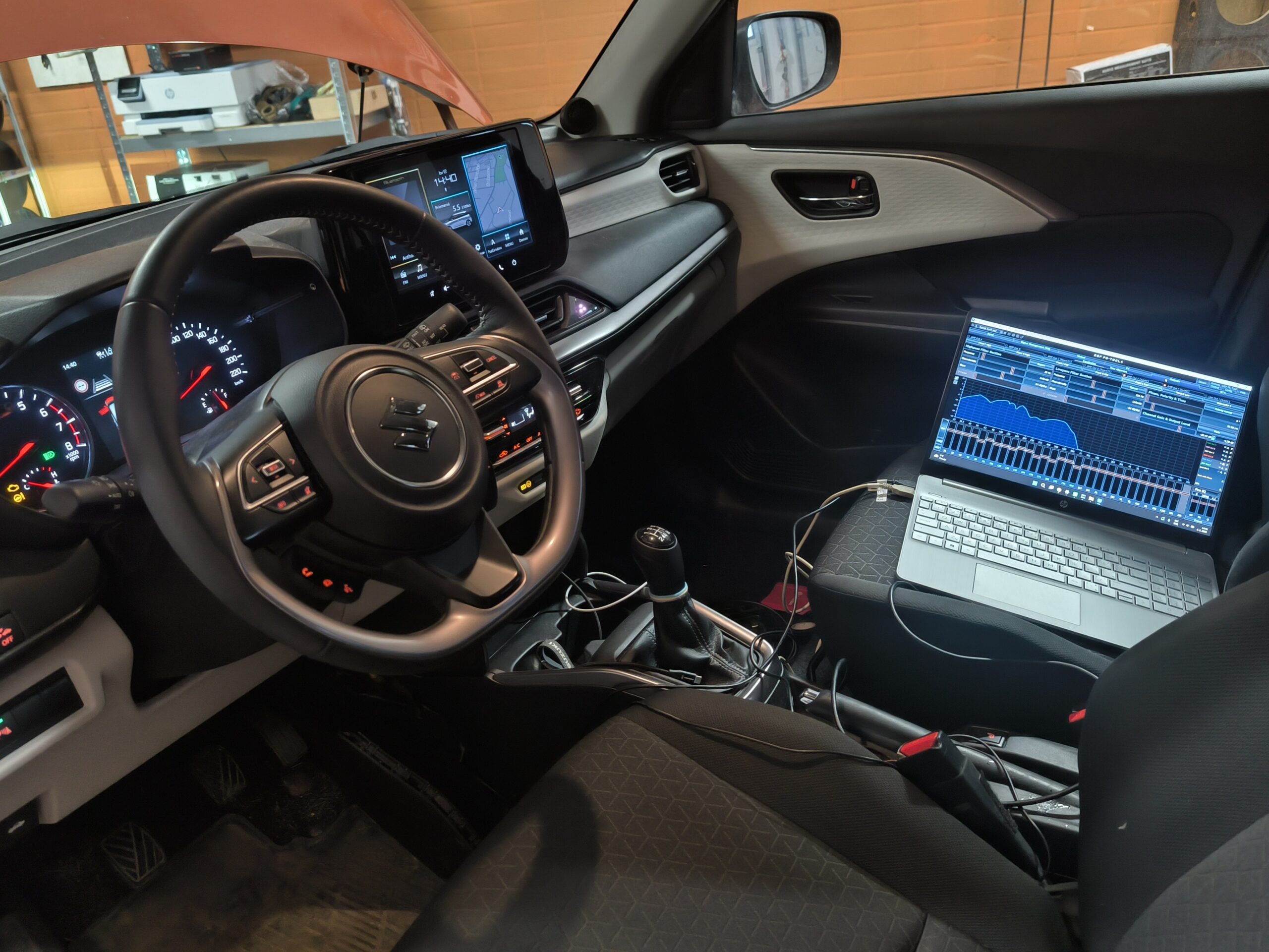 Suzuki Swift – zaujímavá inštalácia do kompaktnej štvorkolky s predným plne aktívnym 3-pásmovým systémom. Použité meniče Seas a Helix Ci3/Ci5, zosilňovač s dsp procesorom Match up 6.
